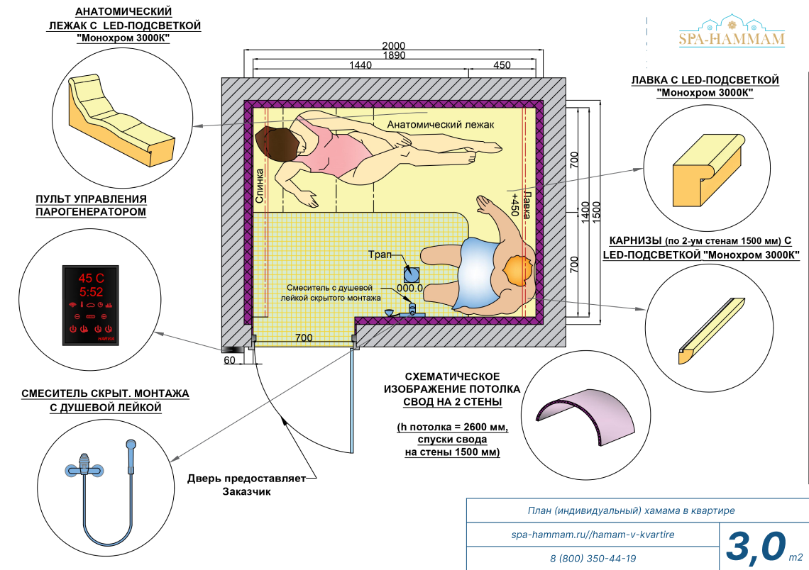 Обратите внимание, что стоимость строительства хамам под ключ, определяется наличием в смете материалов отделки, указывается цена и марка парогенератора. При рассмотрении смет на строительство хамам и выборе предложений от подрядчика — «под ключ», обязательно обращайте внимание на эти моменты.